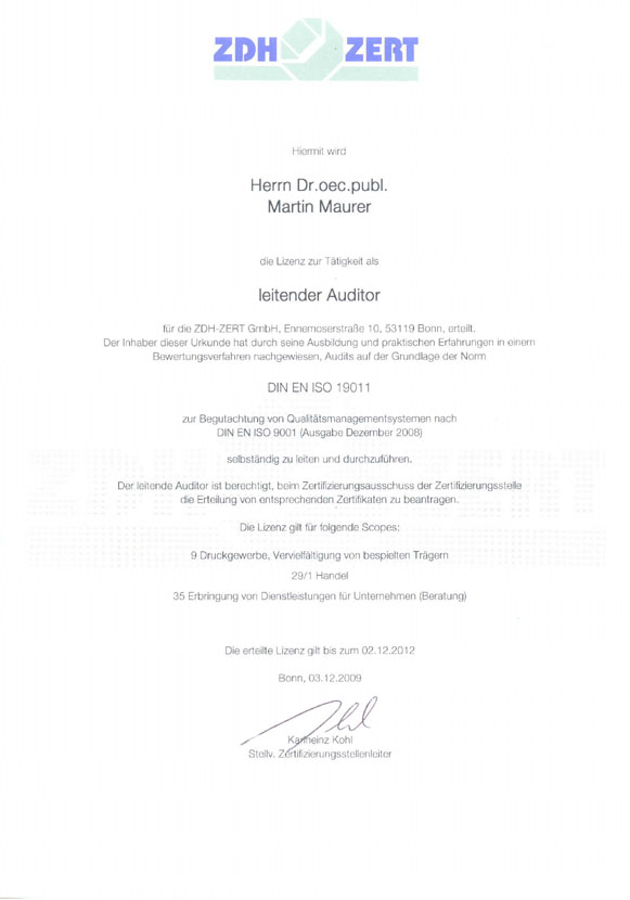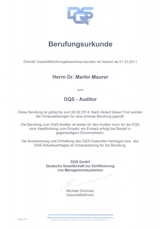 Berufungsurkunde zum DQS - Auditor