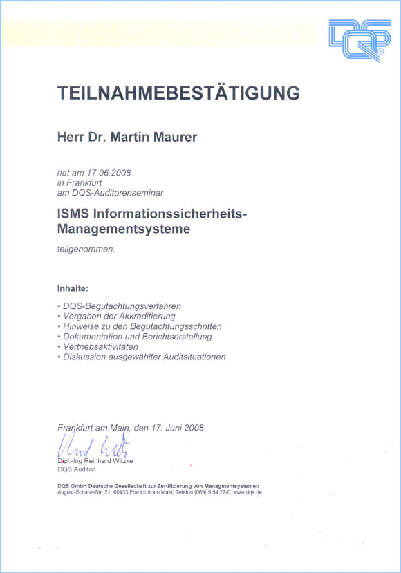 Management-Systeme (Teilnahmebestätigung)