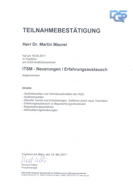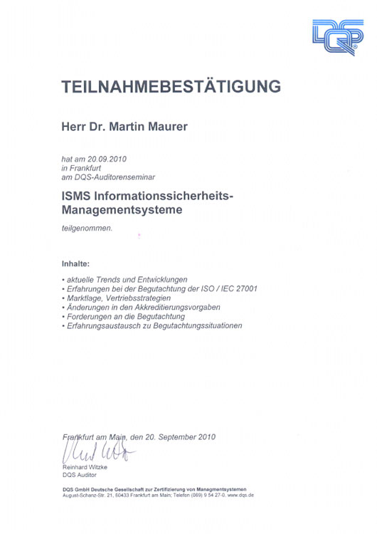 Teilnahmebestätigung ISMS Informationssicherheits-Managementsysteme